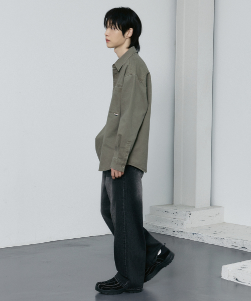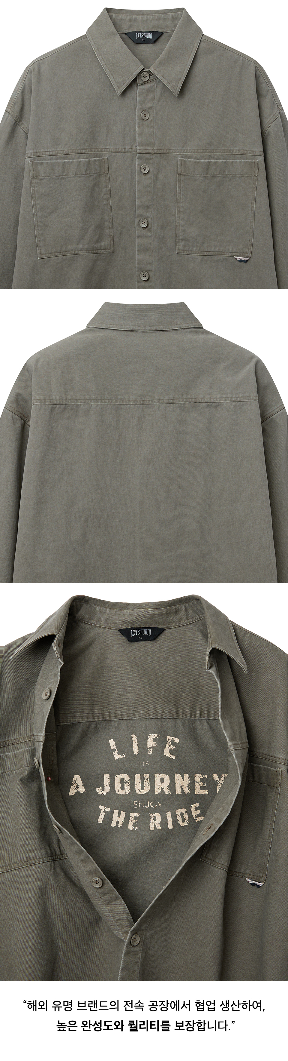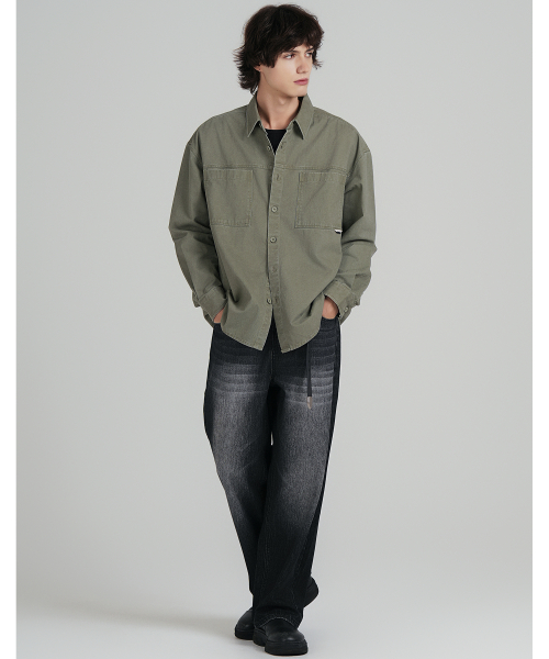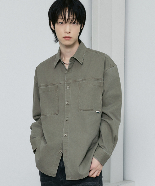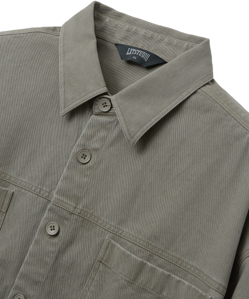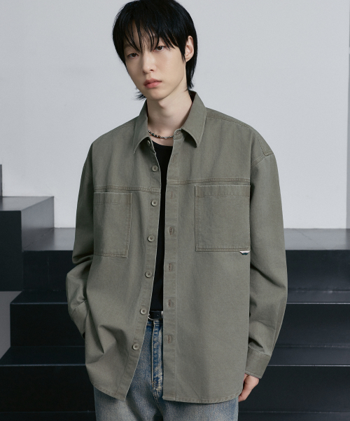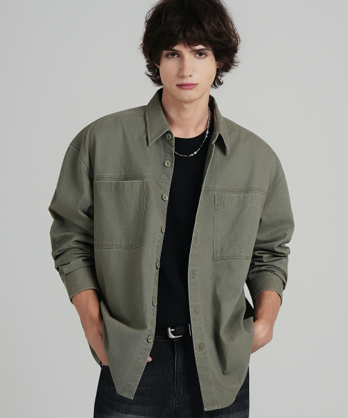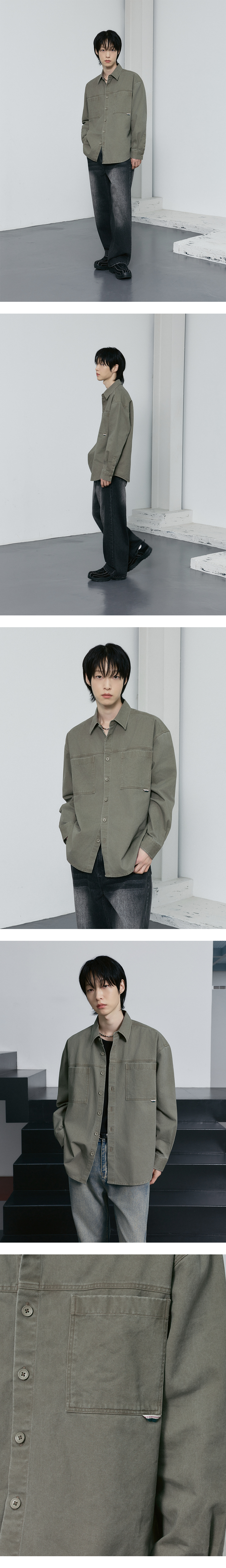 코튼 워시드 오버 셔츠 자켓 [카키]