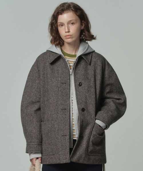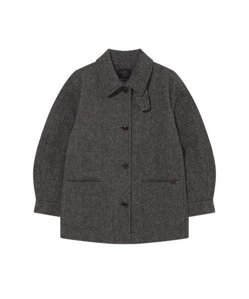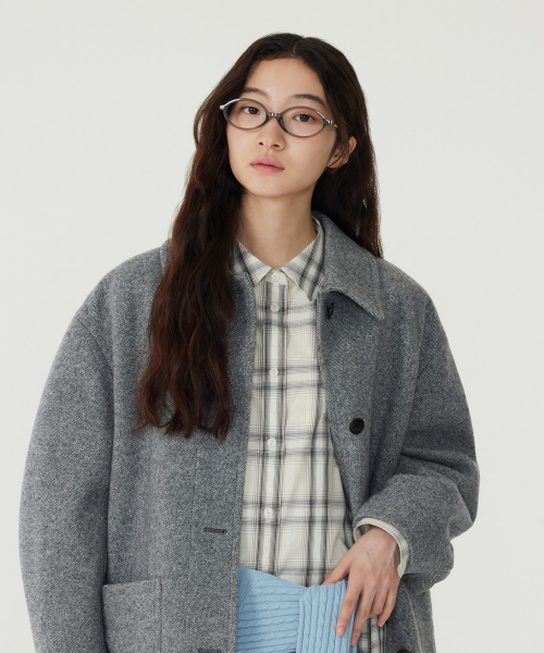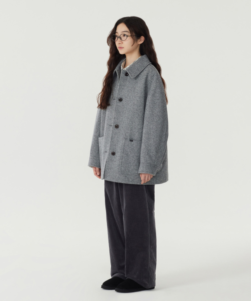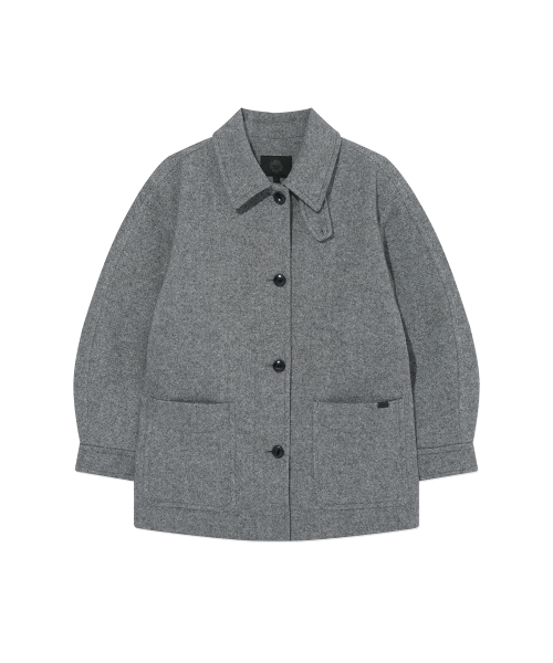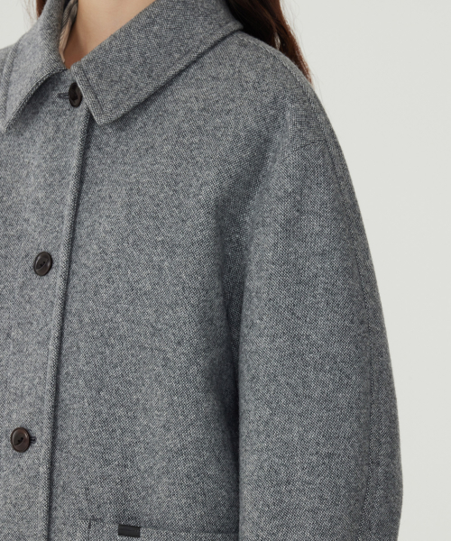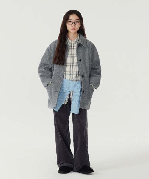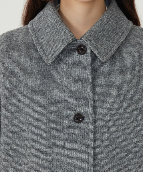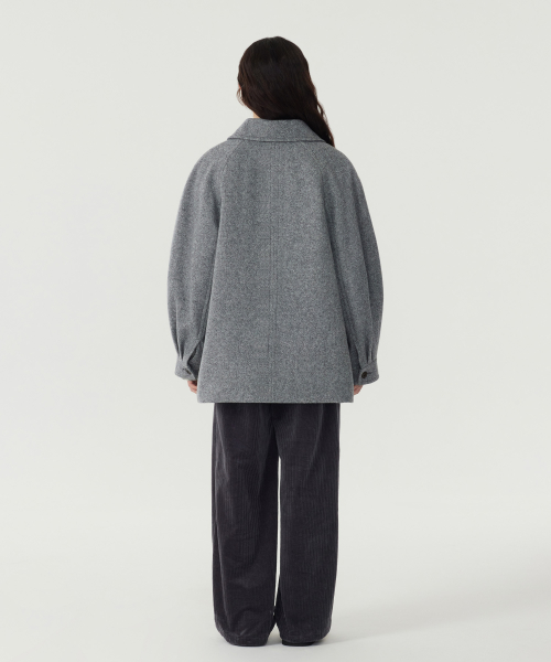 우먼 크롭 시어링 카라 더플 코트 Charcoal