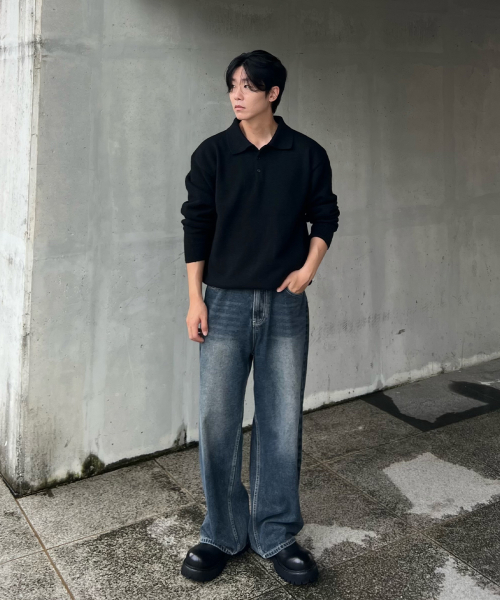 오버핏 케이블 헨리넥 라운드 니트 4Color