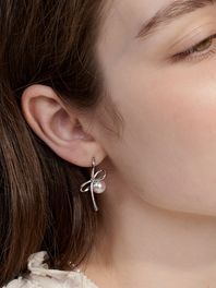 hug pearl ribbon earring