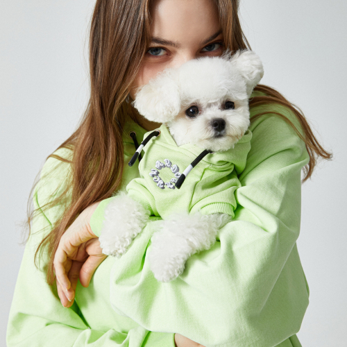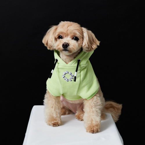 NYC 로고 강아지 후드티 - 빈티지그린