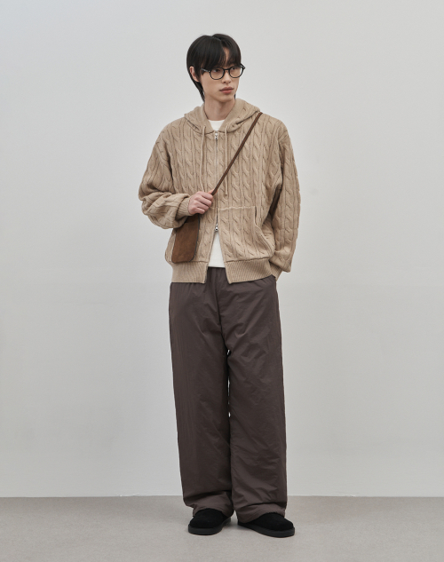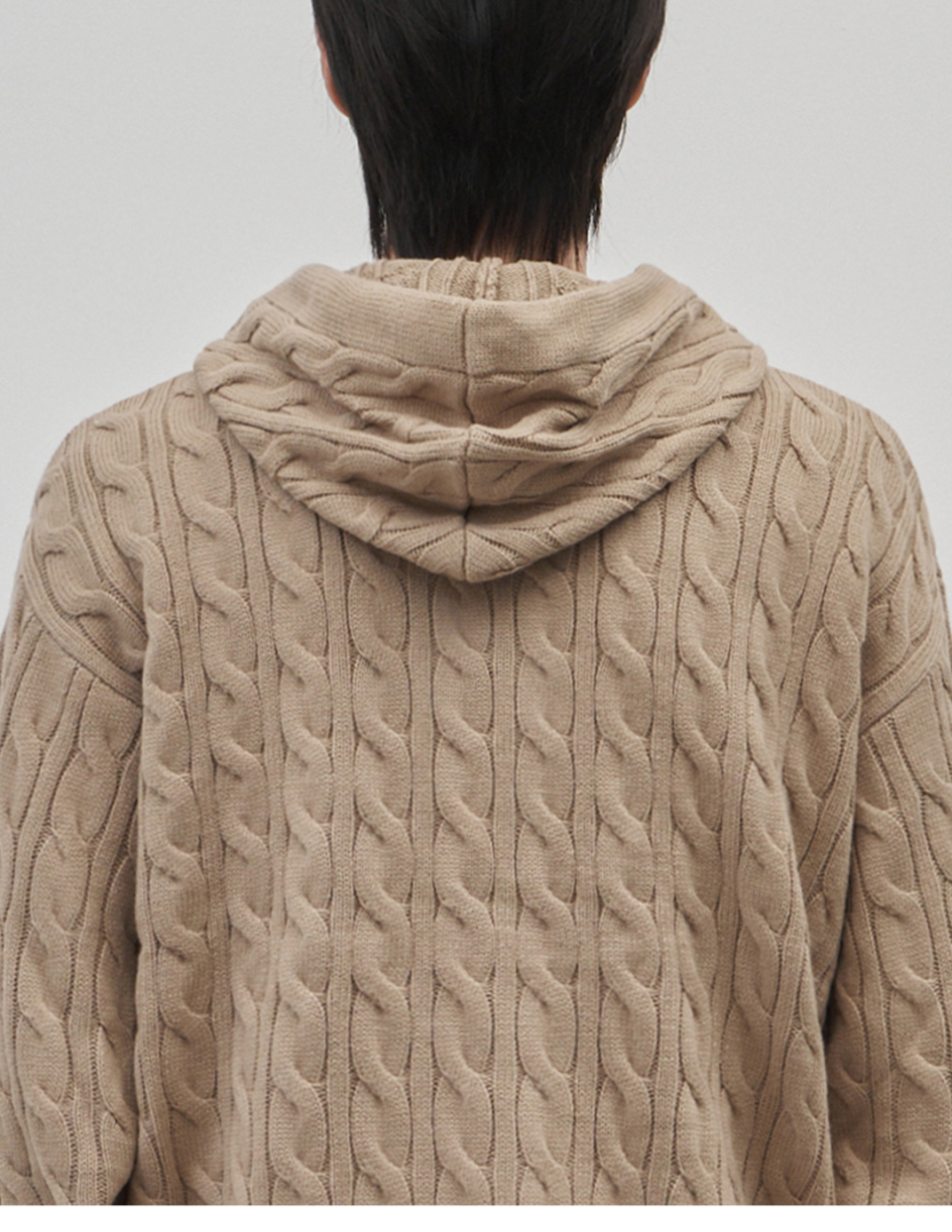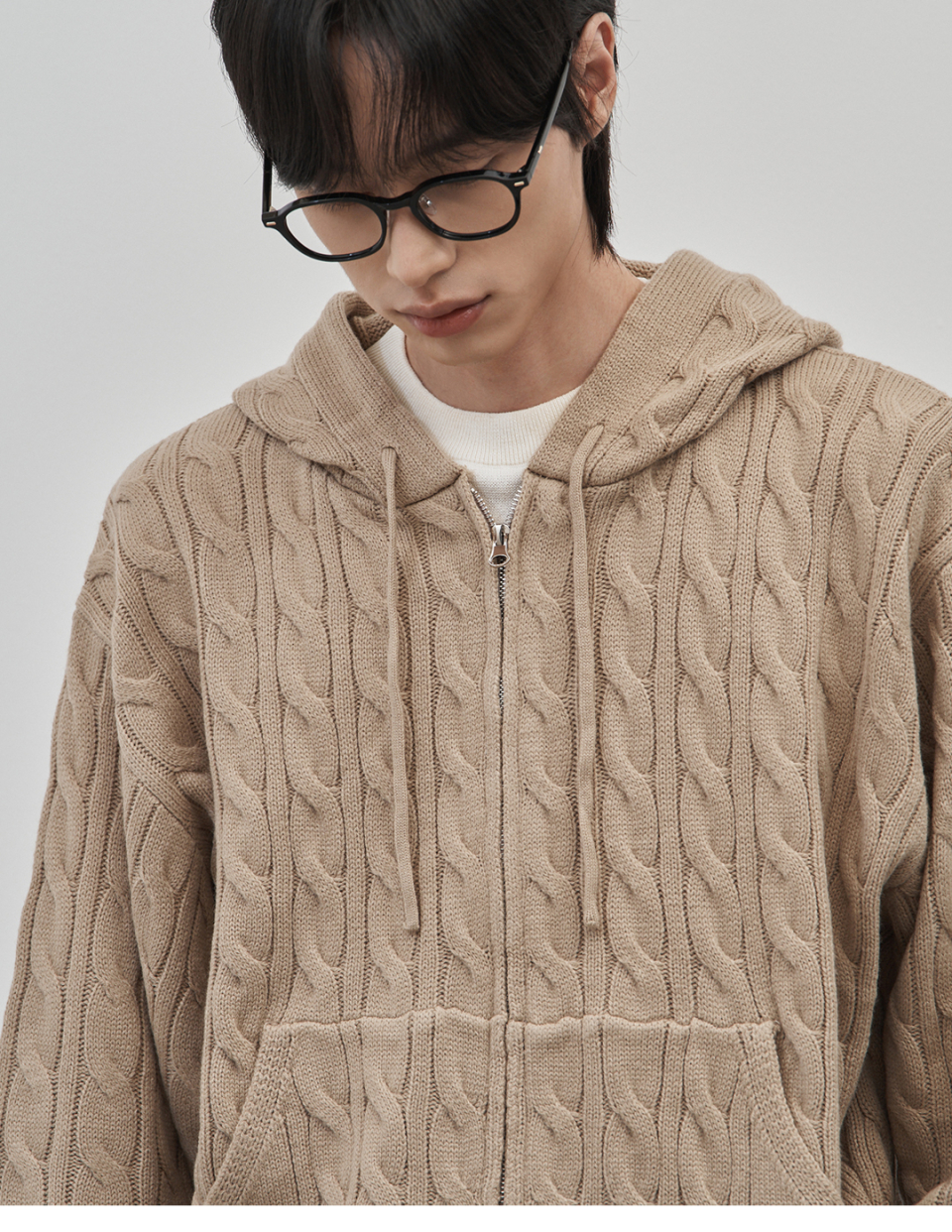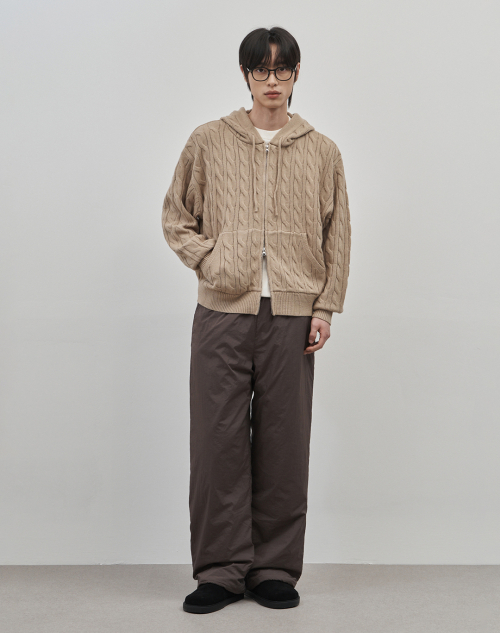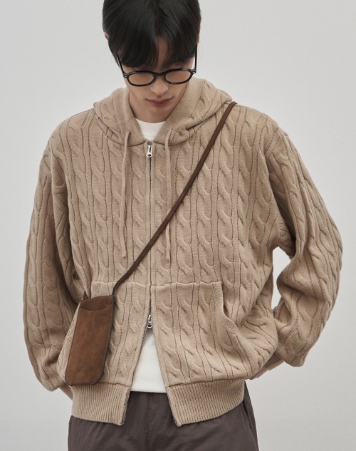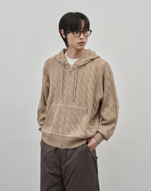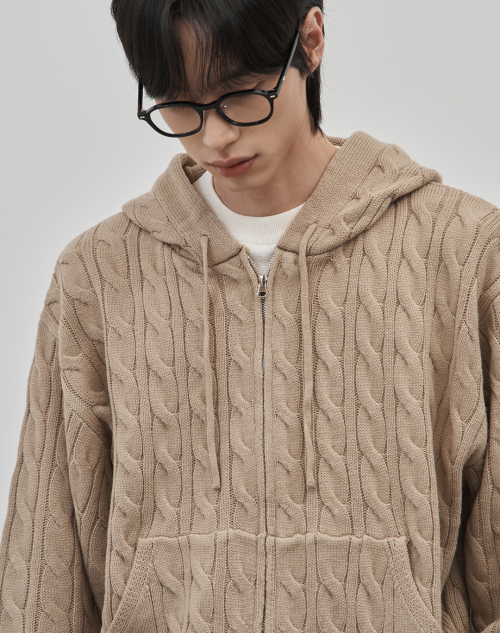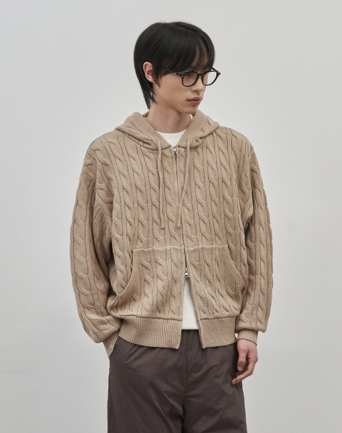 인트레 세미 오버핏 케이블 니티드 후드집업 [베이지]