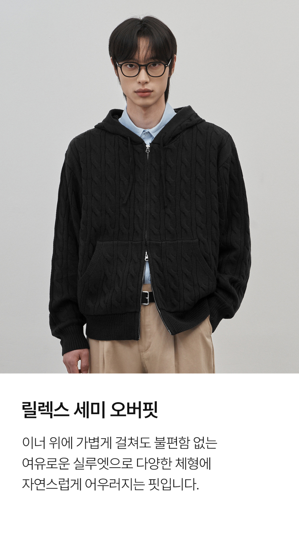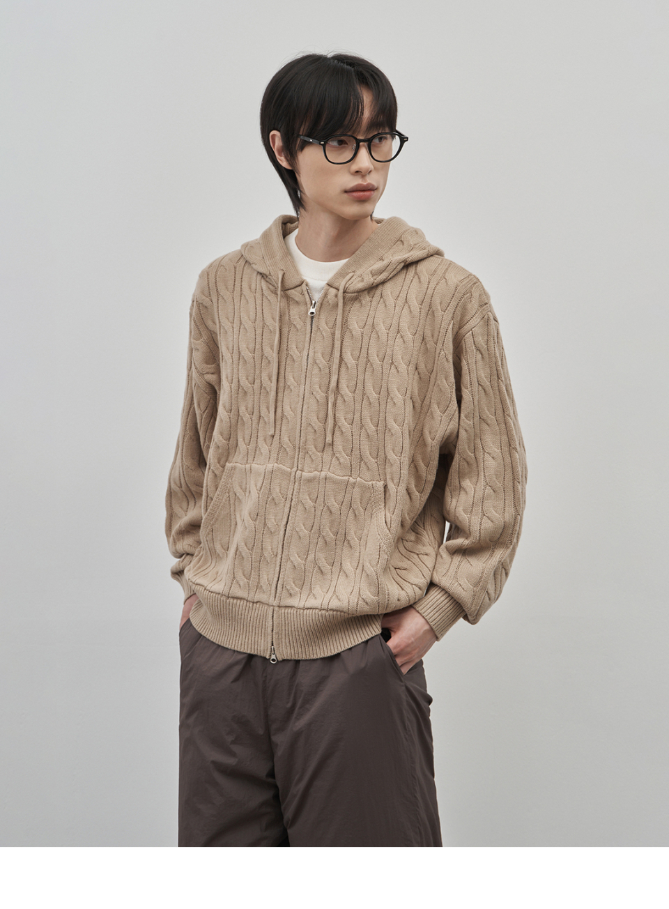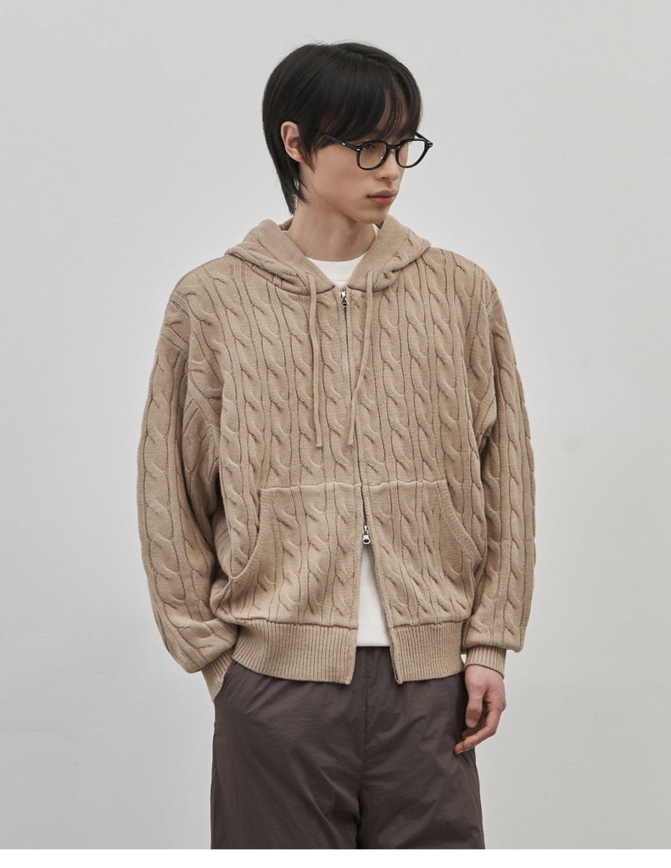 인트레 세미 오버핏 케이블 니티드 후드집업 [베이지]