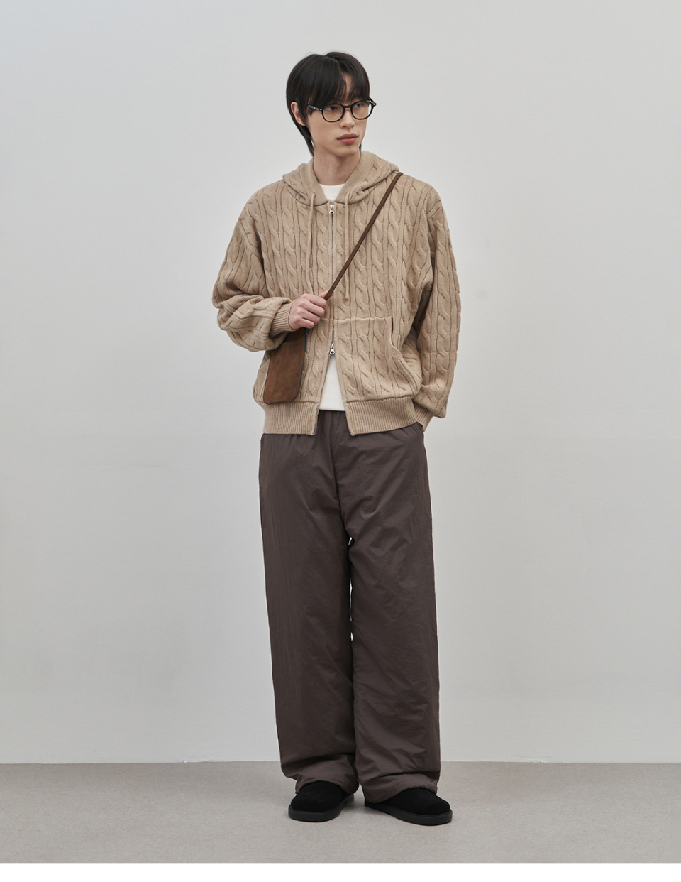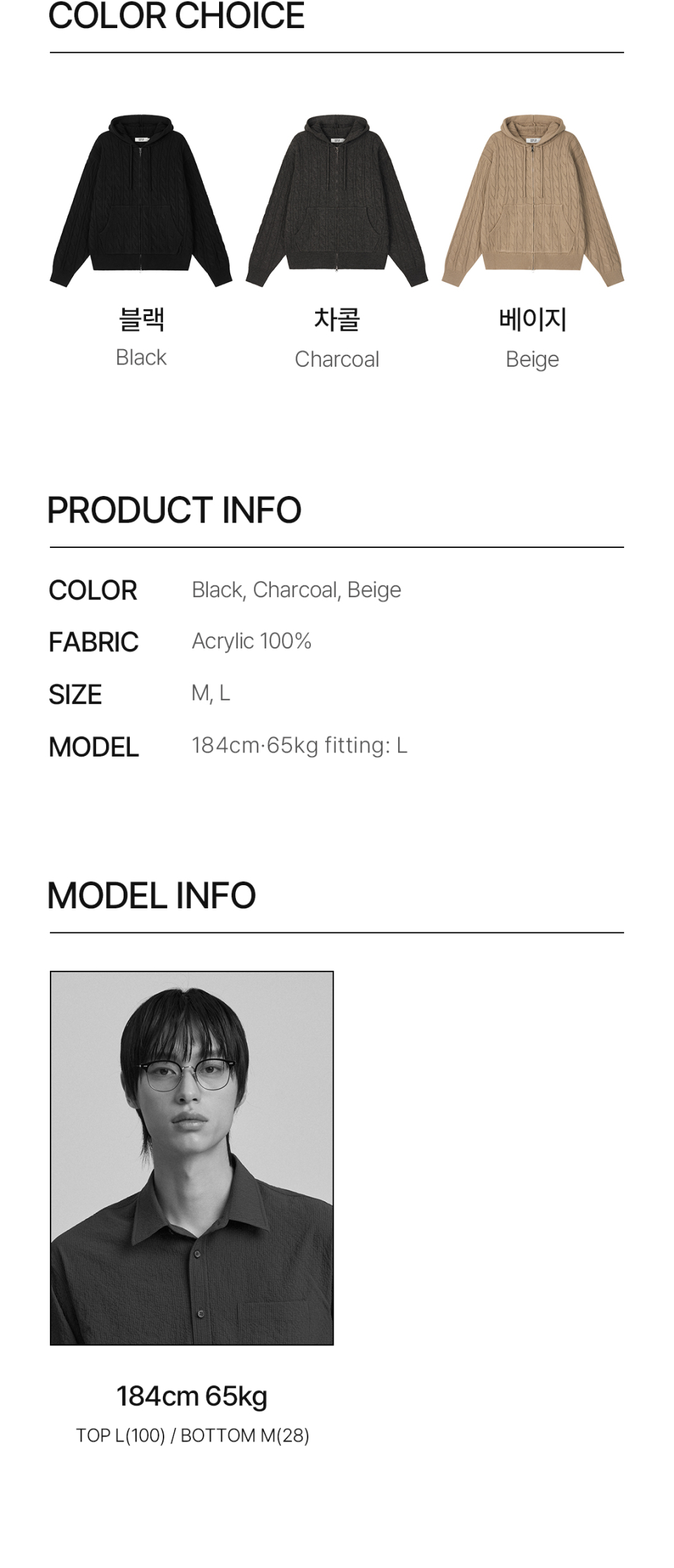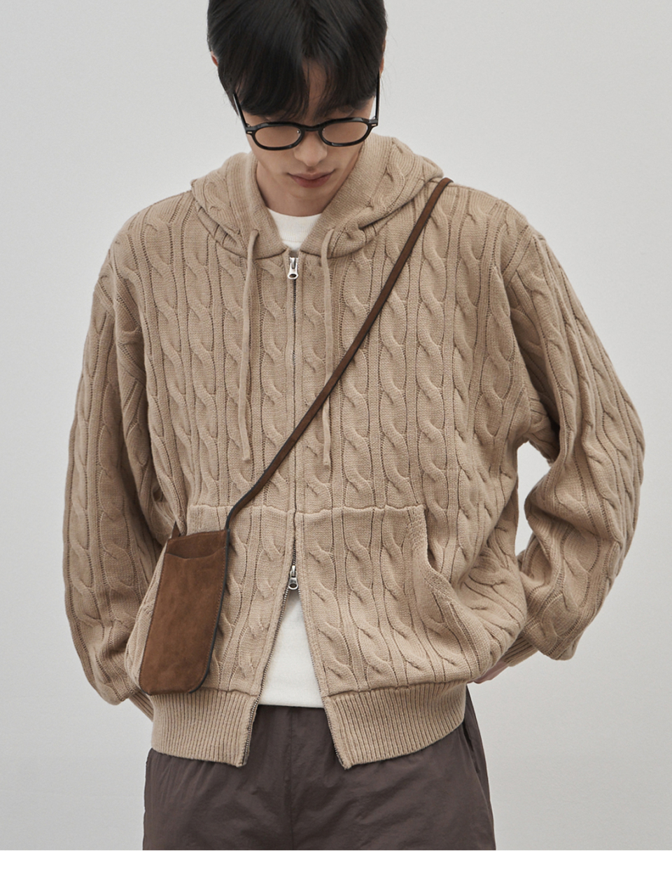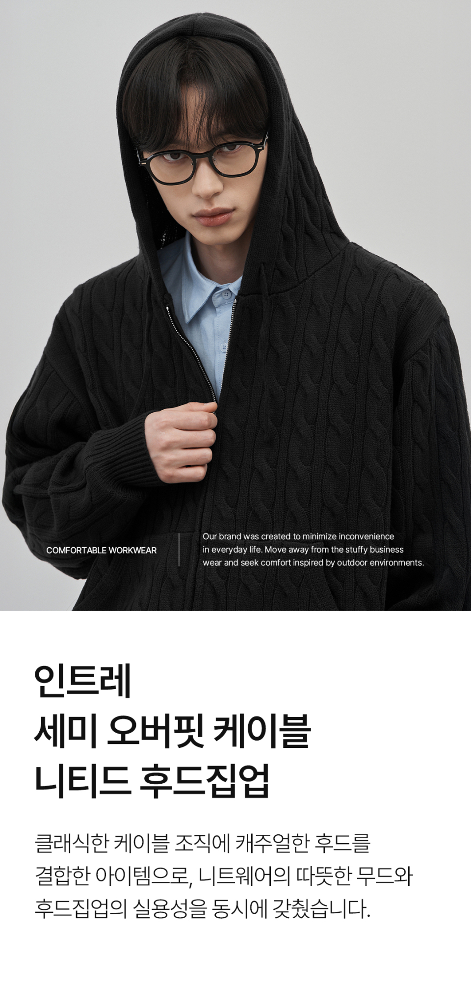 인트레 세미 오버핏 케이블 니티드 후드집업 [베이지]