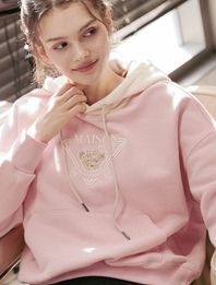 우먼즈 크롭 베어프렌즈 시그니처 엠블럼 투톤 헤비테리 후디 핑크크림(FCD3TS717W)