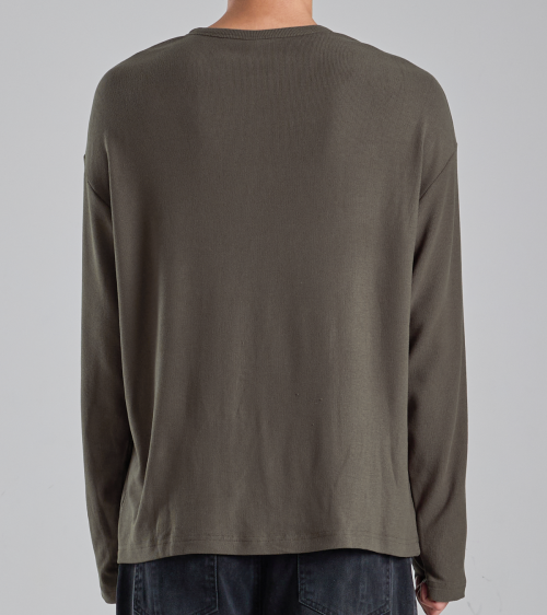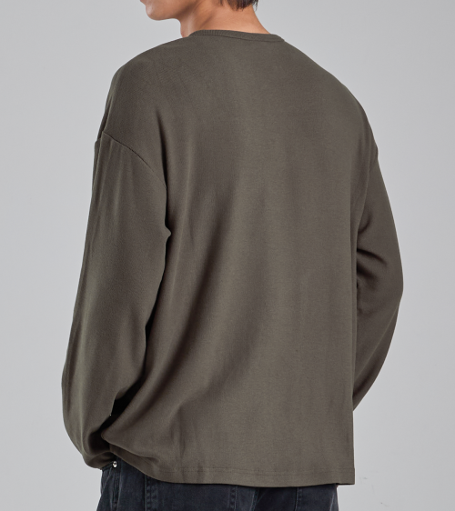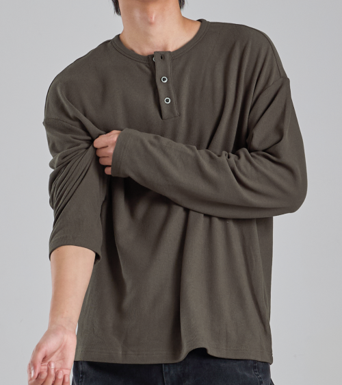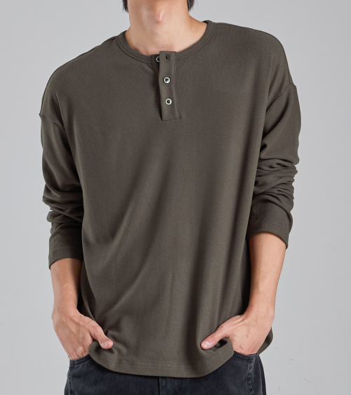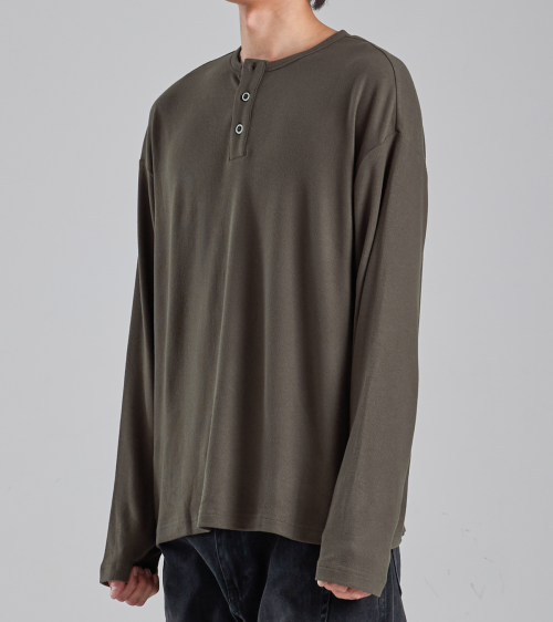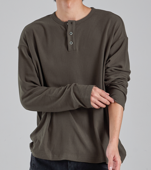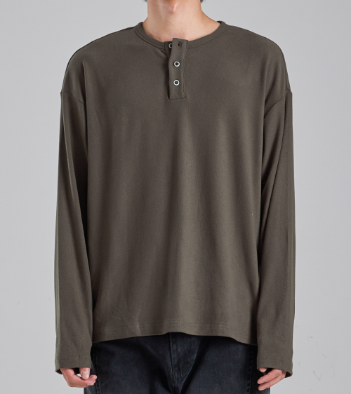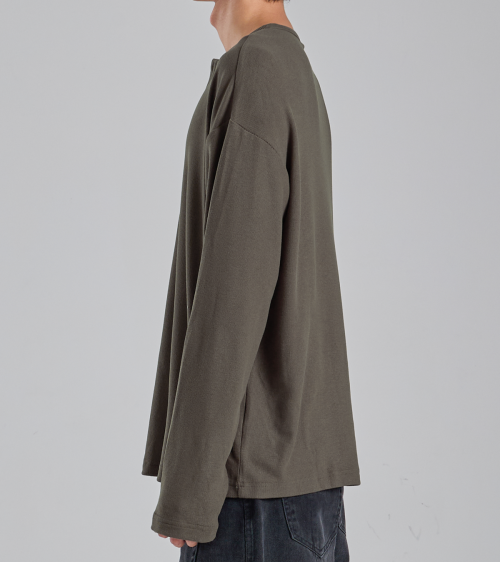 EcoCosy 헨리넥 니트 티셔츠 (카키 브라운)