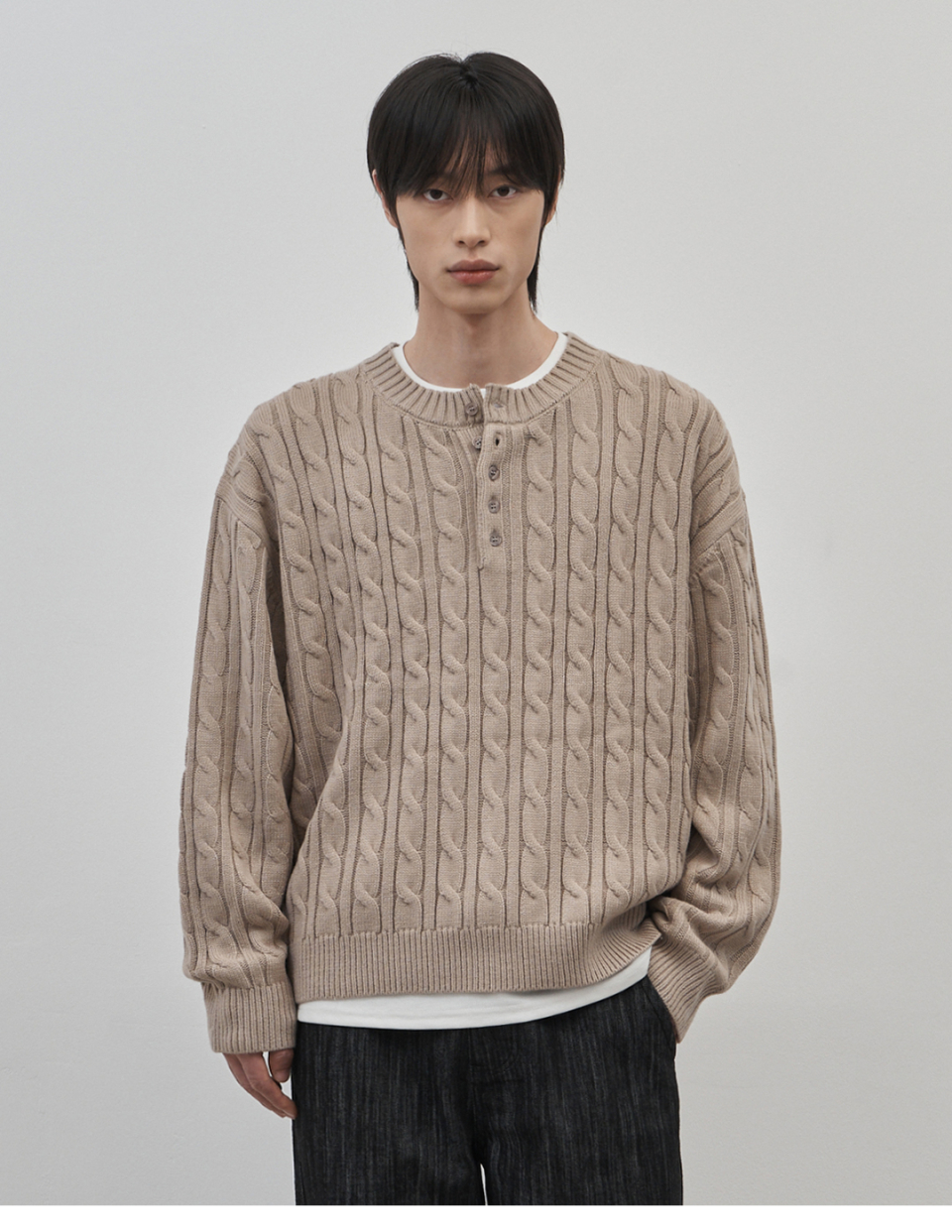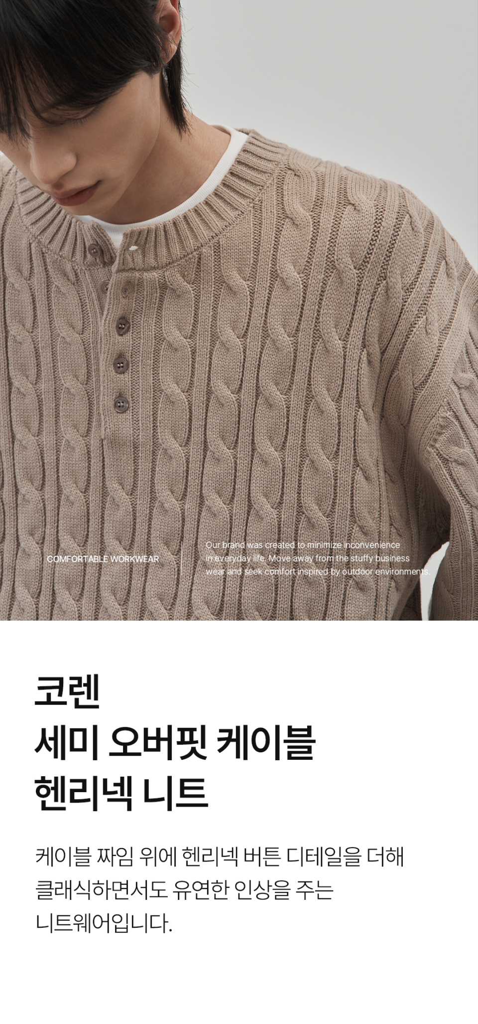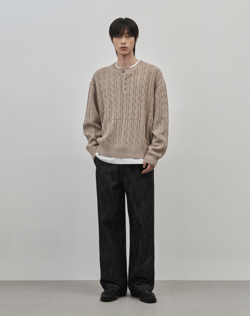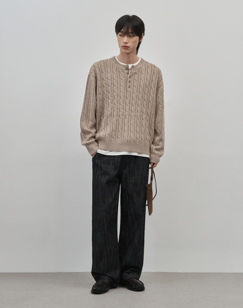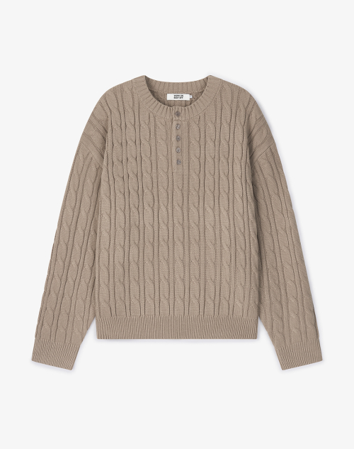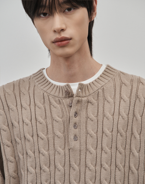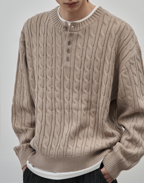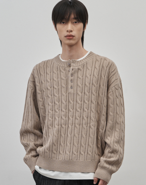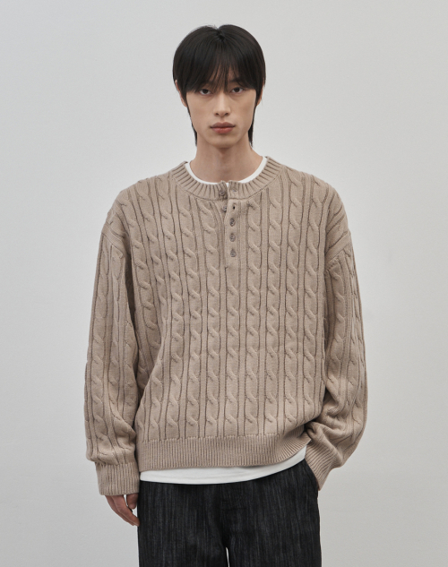 코렌 세미 오버핏 케이블 헨리넥 니트 [베이지]