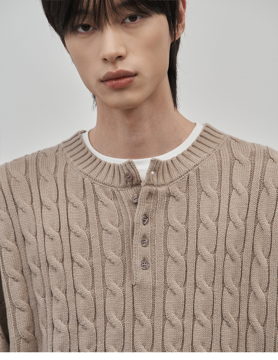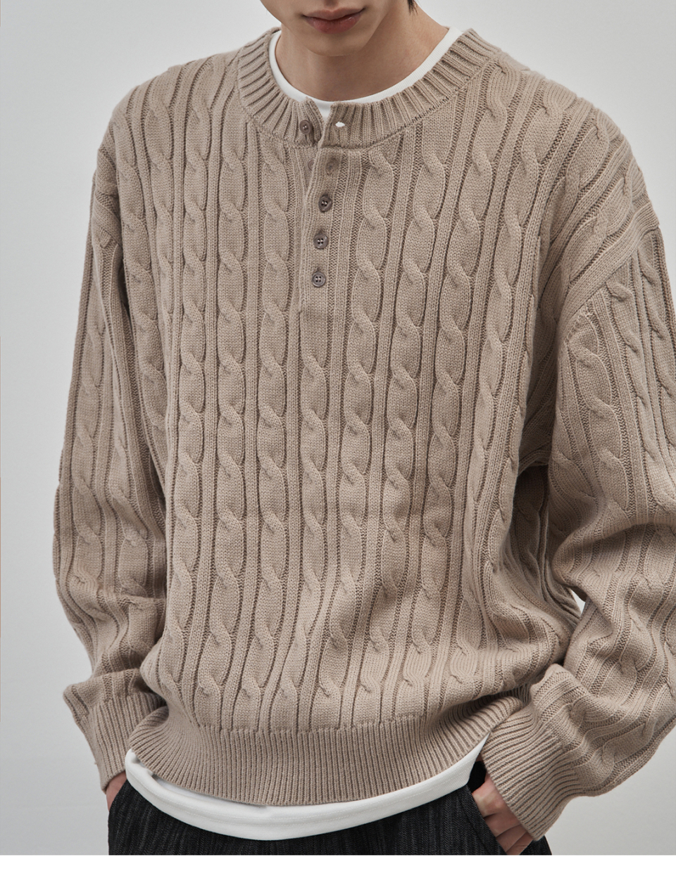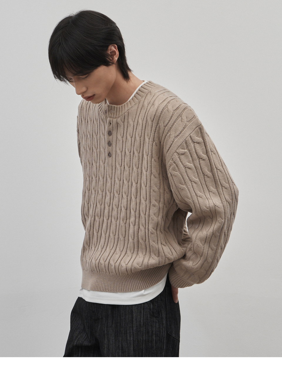 코렌 세미 오버핏 케이블 헨리넥 니트 [베이지]