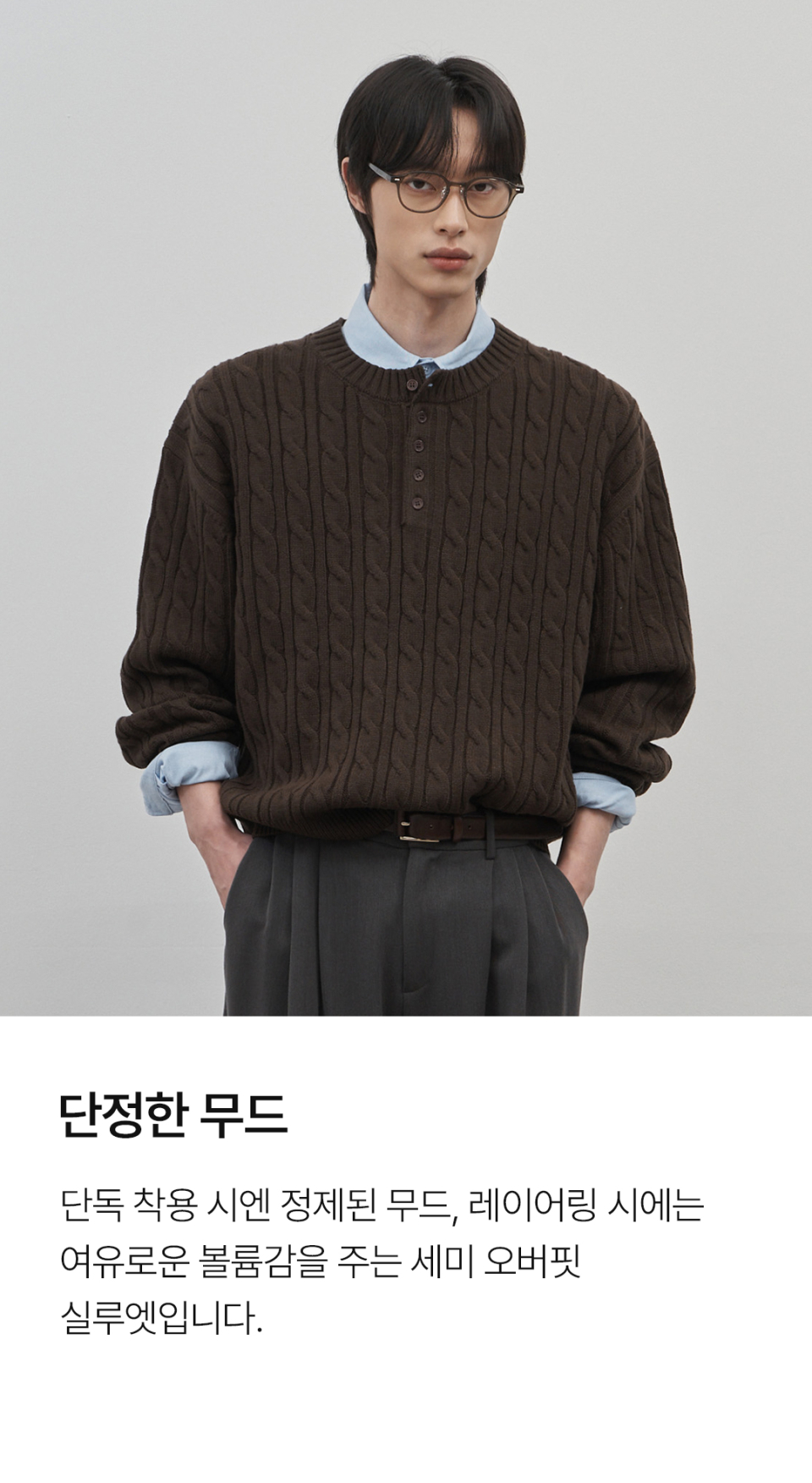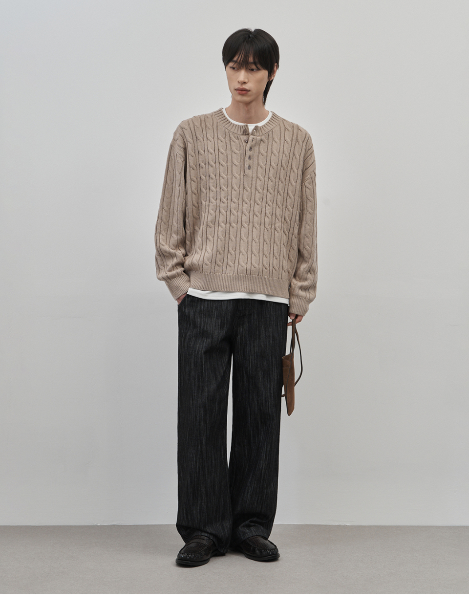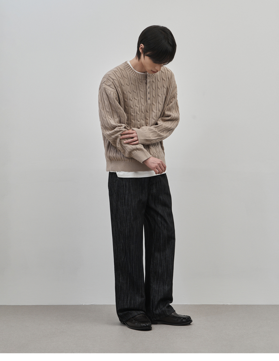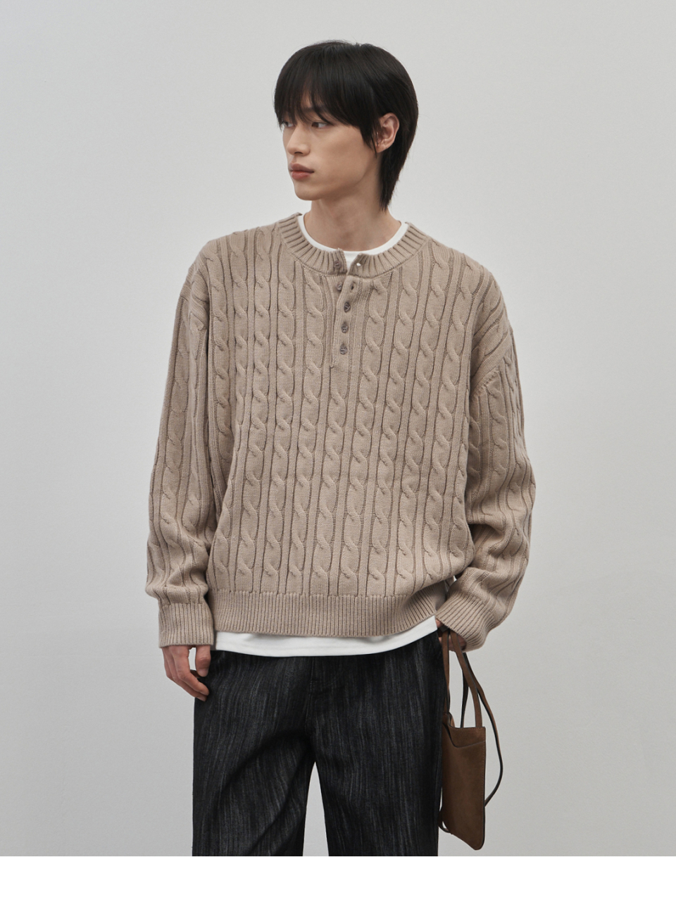 코렌 세미 오버핏 케이블 헨리넥 니트 [베이지]