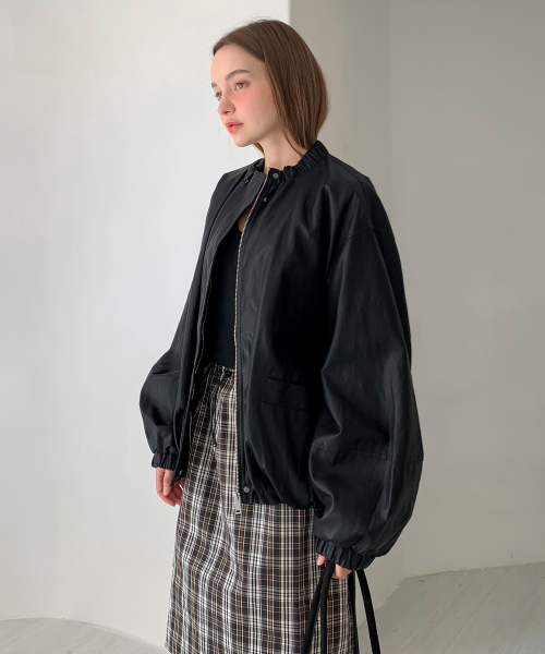 Shirring Volume Faux Leather Jacket (3colors)