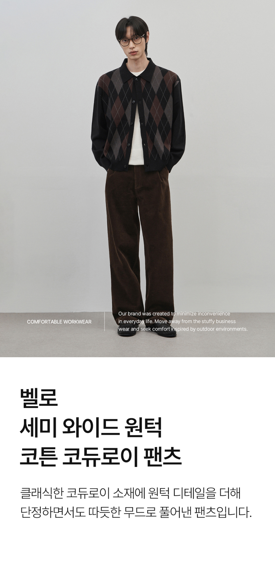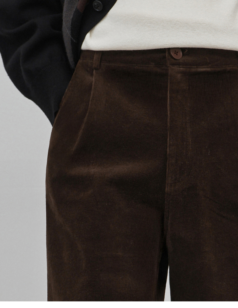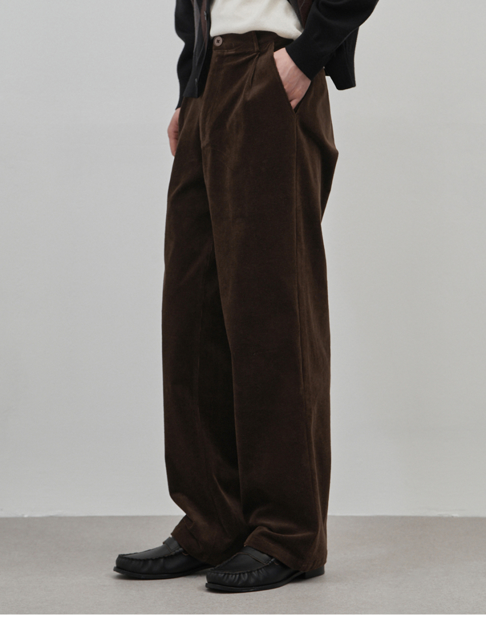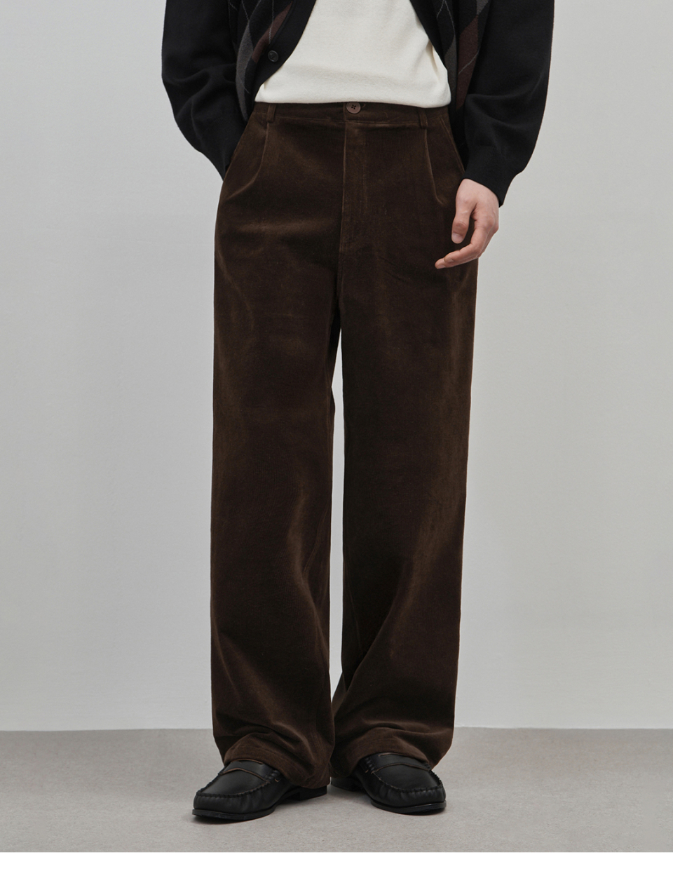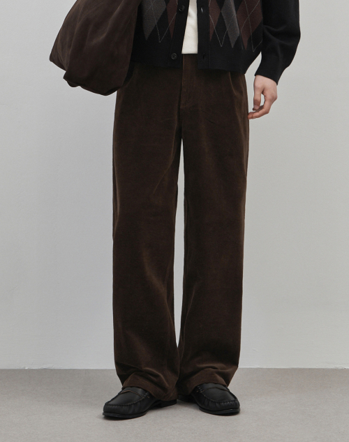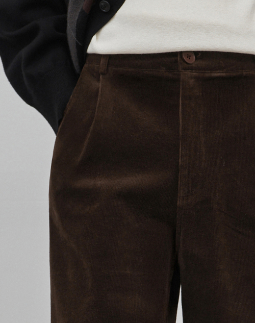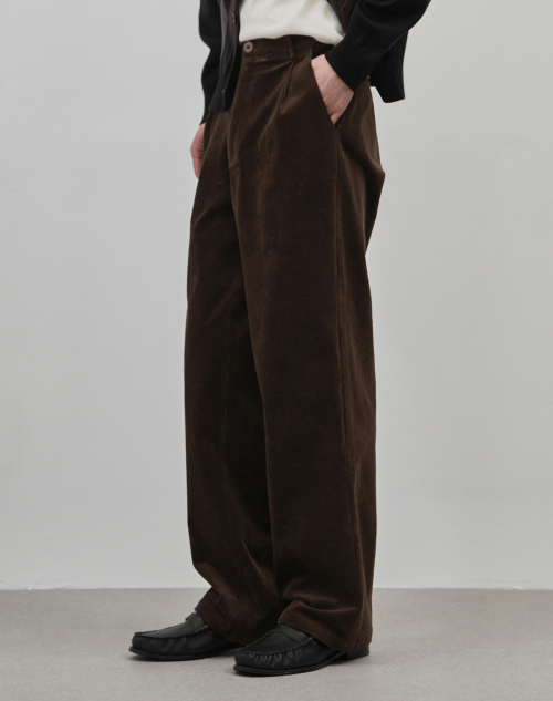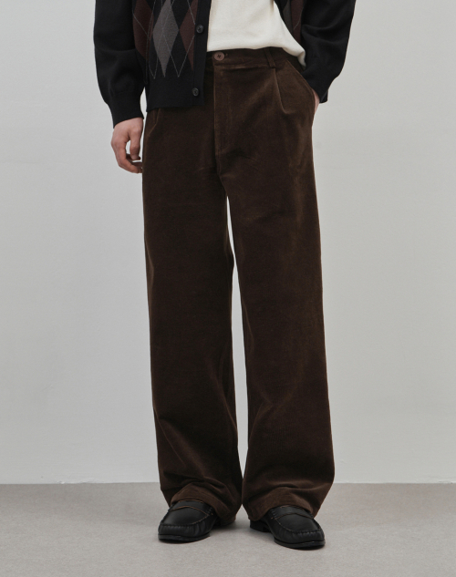 벨로 세미 와이드 원턱 코튼 코듀로이 팬츠 [브라운]