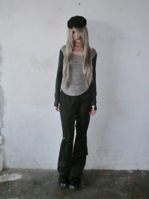 Y2K 스트라이프 헌팅 캡 (크림그레이)