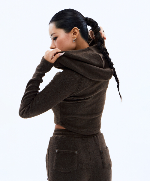 [SET] 메탈 라벨 웜터치 후디&부츠컷 세트 (BROWN)