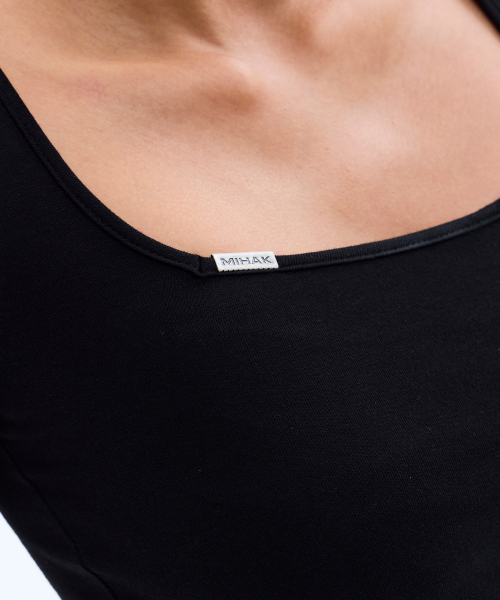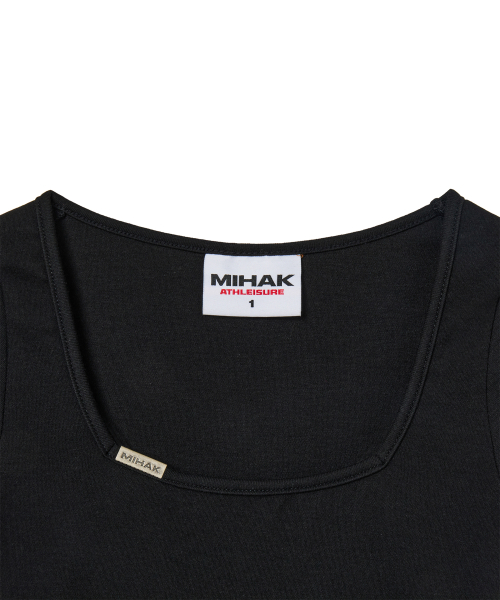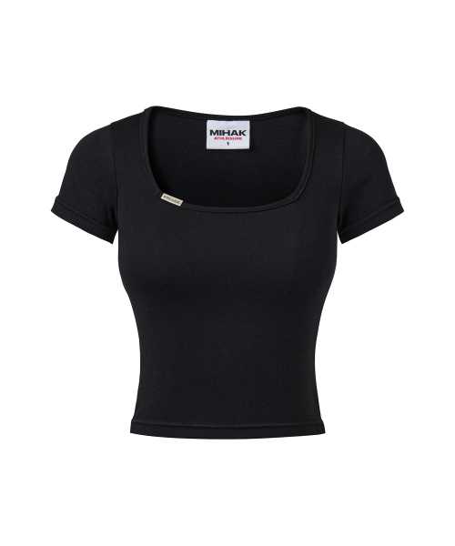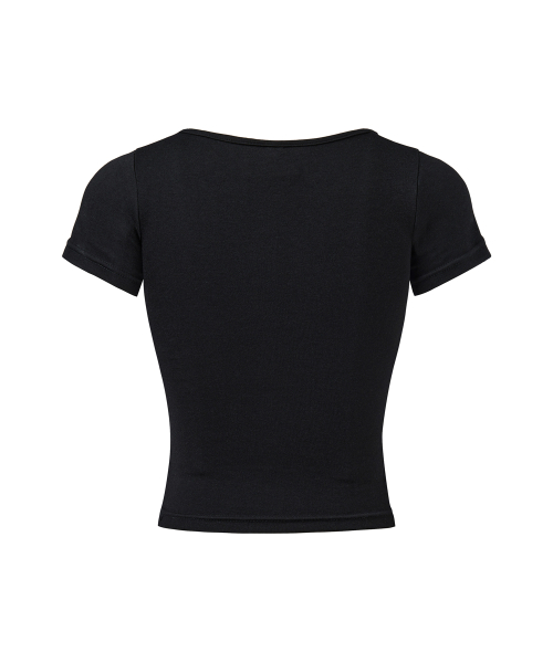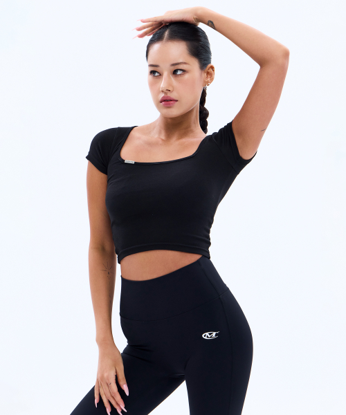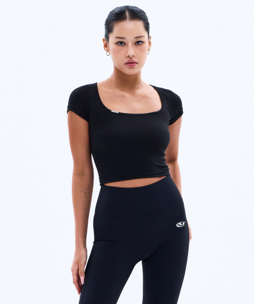메탈 클립 스퀘어넥 크롭 티셔츠 (BLACK)
