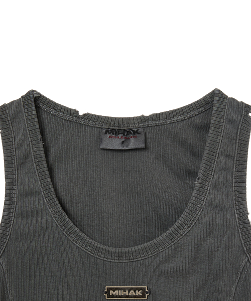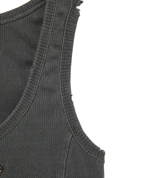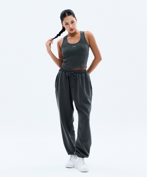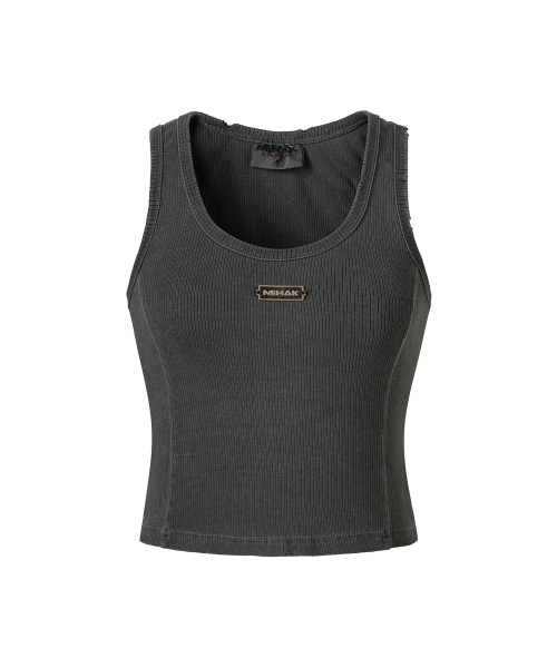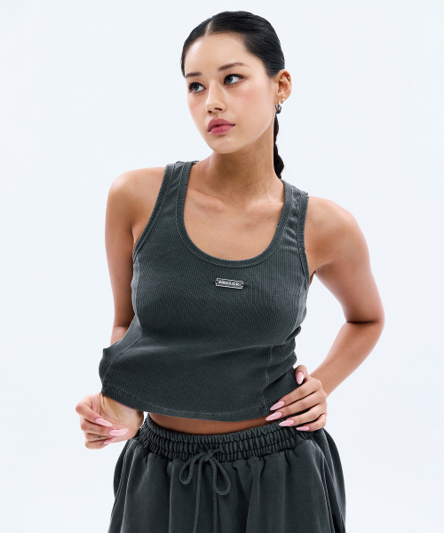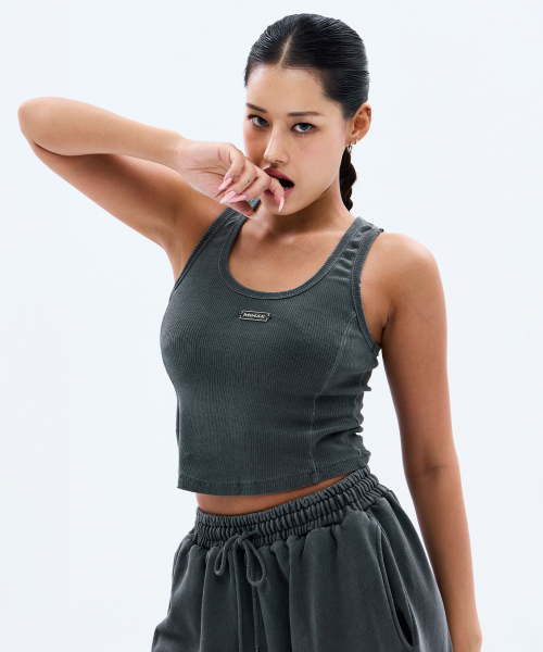 메탈 라벨 피그먼트 다잉 크롭 탱크탑 (CHARCOAL)