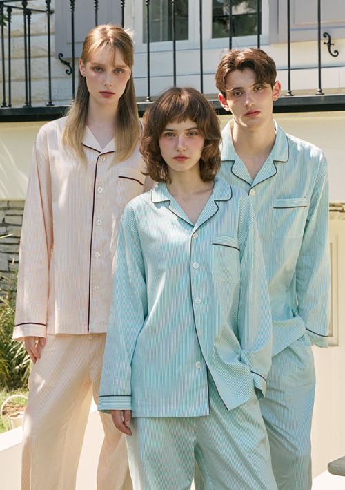 브리즈 라인 면 커플 파자마 잠옷 세트