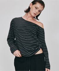 스트라이프 원숄더 레귤러핏 롱슬리브