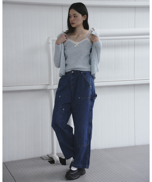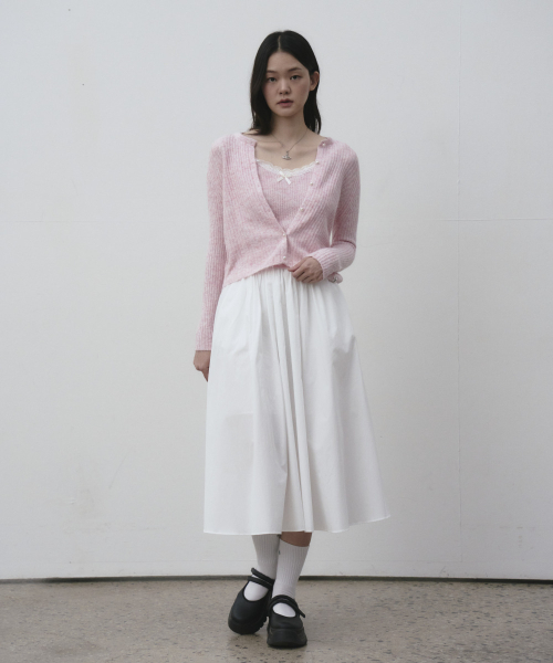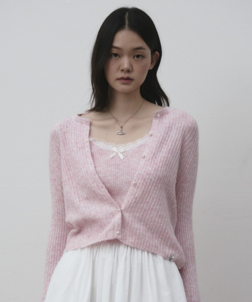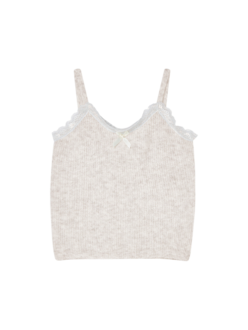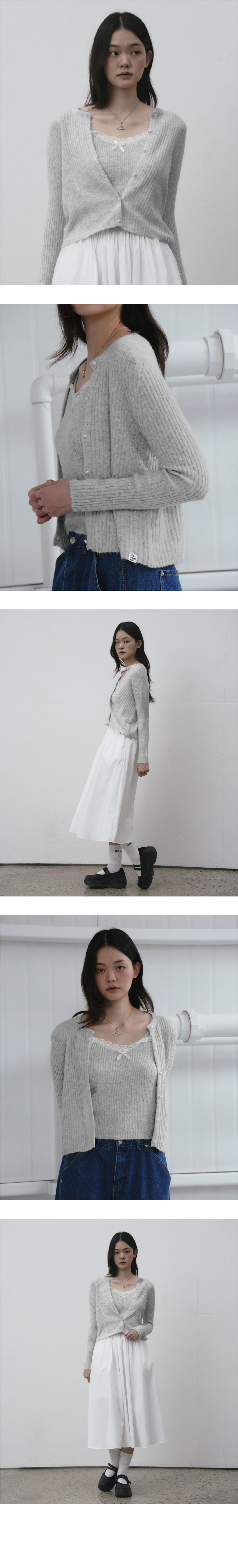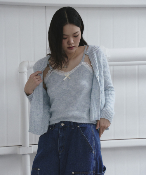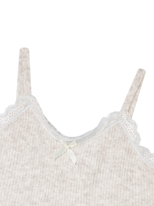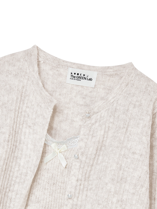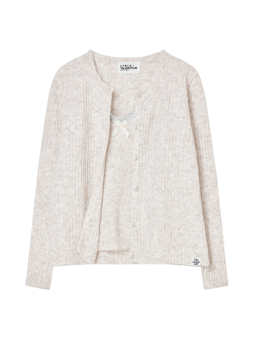 레이스 디테일 탑 가디건 세트 [베이지]