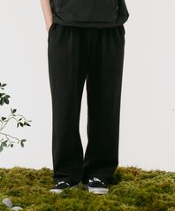 더블니트 원턱 와이드 팬츠 [매트 블랙]