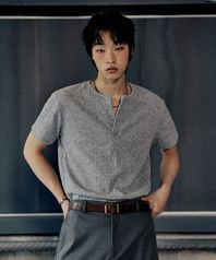 썸머 리브드 헨리넥 숏 슬리브