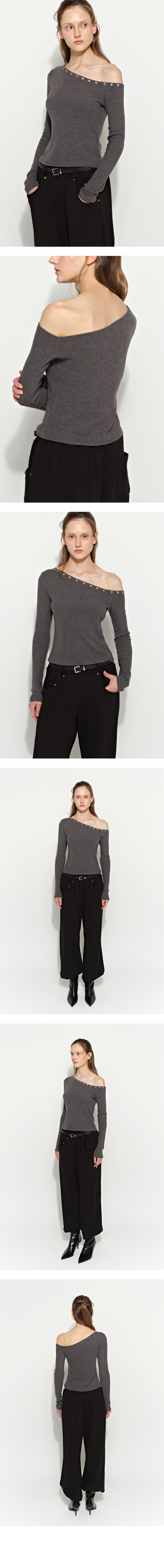 비욘드 소프트 오프숄더 탑 - 스트라이프 와인