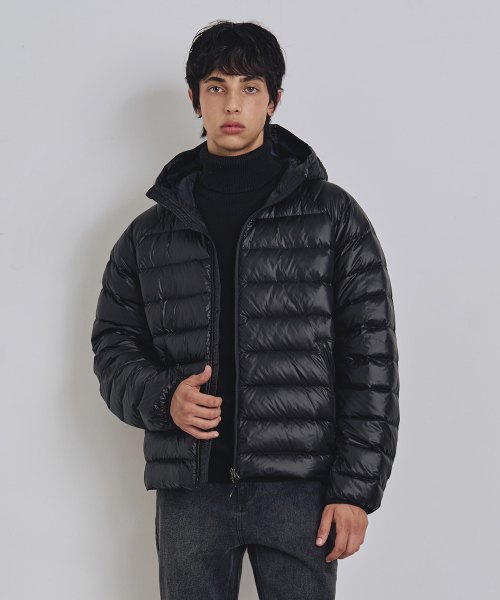 [덕다운ver.] 라이트웨이트 후드 덕다운 패딩 자켓 글로시블랙 COOSJP051GLOSSYBK