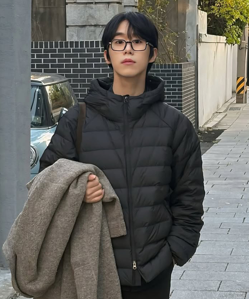 [덕다운ver.] 라이트웨이트 후드 덕다운 패딩 자켓 블랙 COOSJP051BLACK