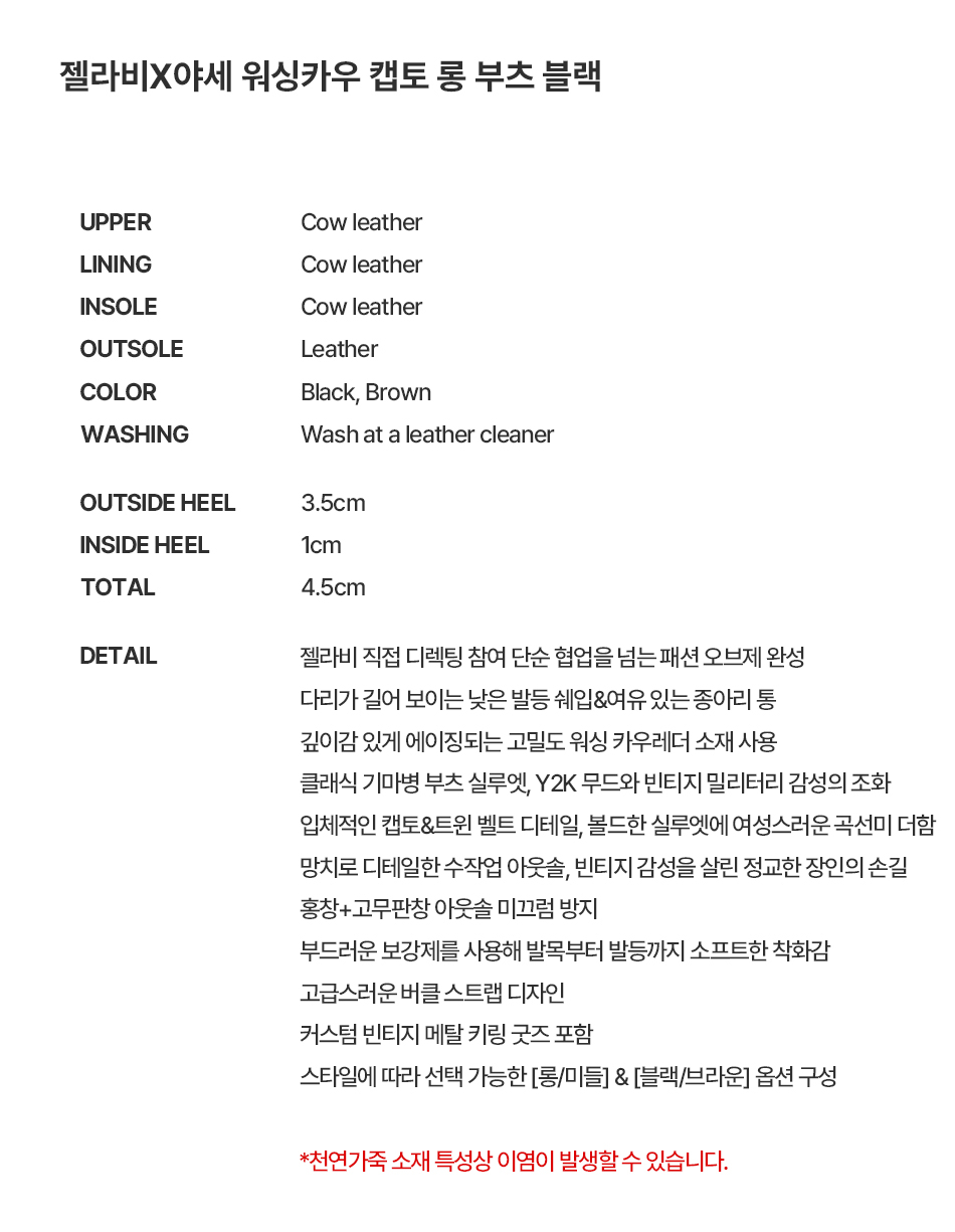 젤라비x야세 워싱카우 캡토 롱 부츠 블랙