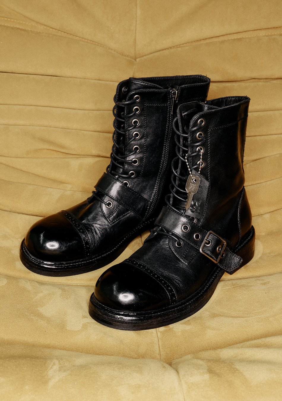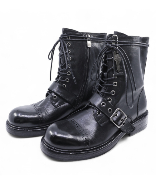 나야와시 x 야세 벨티드 홀스하이드 부츠 블랙