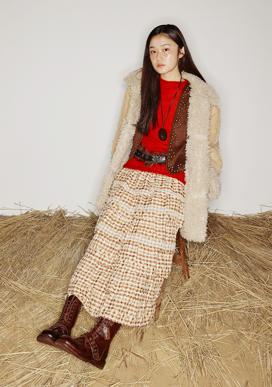 젤라비x야세 워싱카우 캡토 미들 부츠 브라운