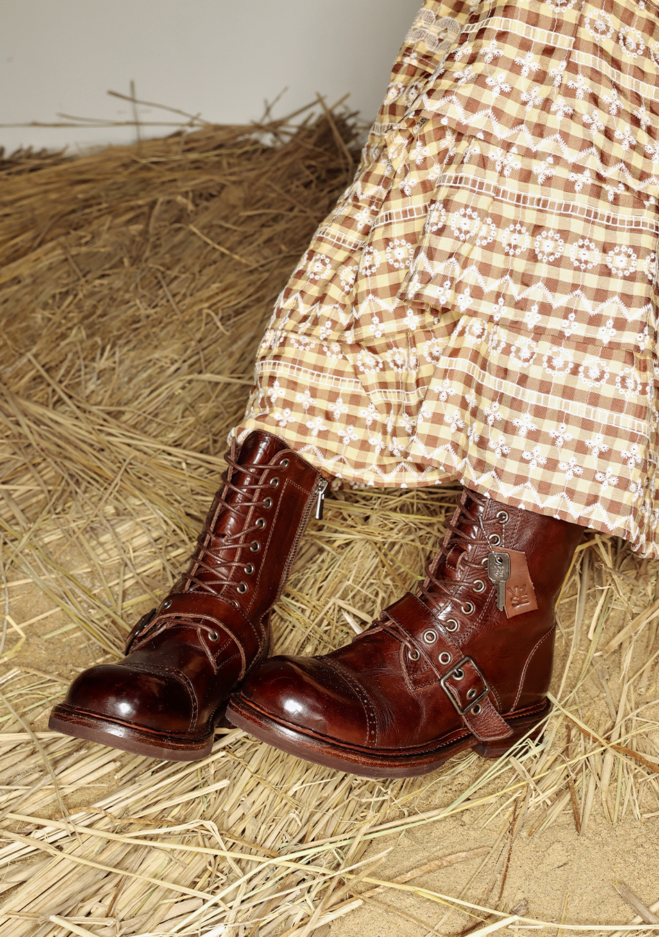 나야와시 x 야세 벨티드 홀스하이드 부츠 브라운