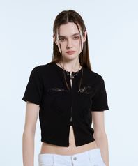 L11 RIBBON LACE ZIP-UP(BLACK)