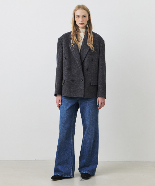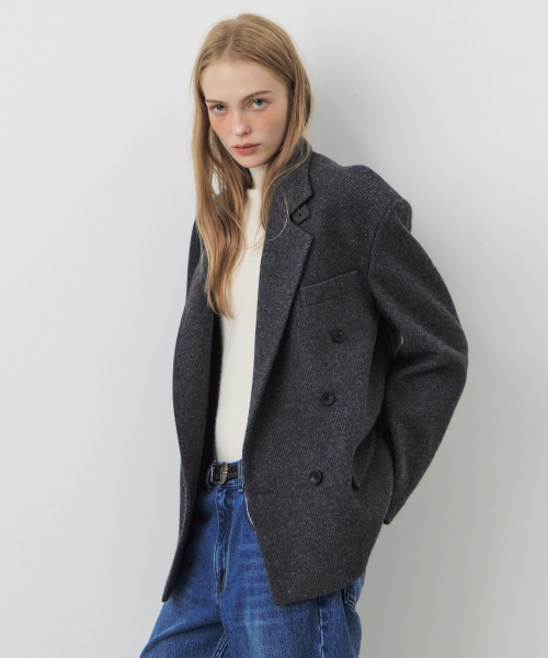 울 더블 브레스트 하프 코트_CHARCOAL