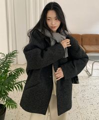 울 레이어드 카라 코트_CHARCOAL