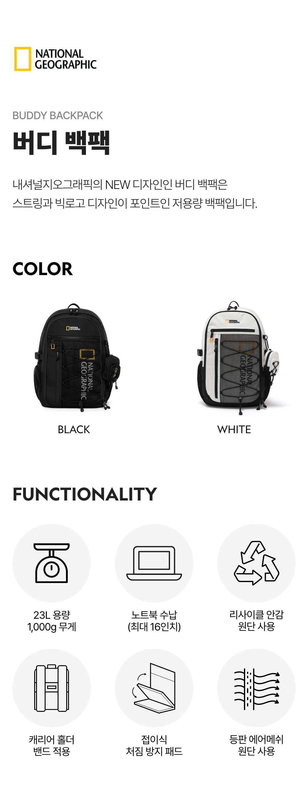 내셔널지오그래픽(NATIONAL GEOGRAPHIC)은 적극적으로 자신을 표현하며 가치소비를 추구하는 여러분을 위해 의류, 캐리어, 백팩, 캠핑 등 700여 가지가 넘는 다양한 제품을 제안합니다. 일상에서부터 자연 그리고 또 다른 세상으로 떠나는 여러분의 특별한 경험과 여정이 더욱 풍성해 질 수 있도록 노력하고 있습니다.