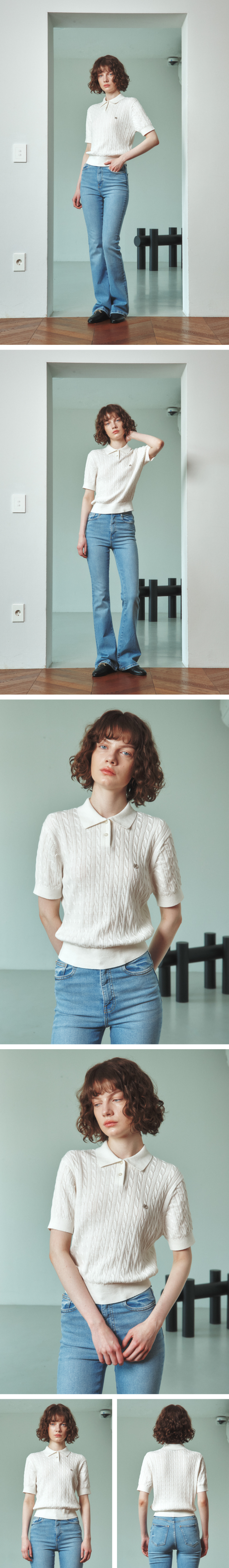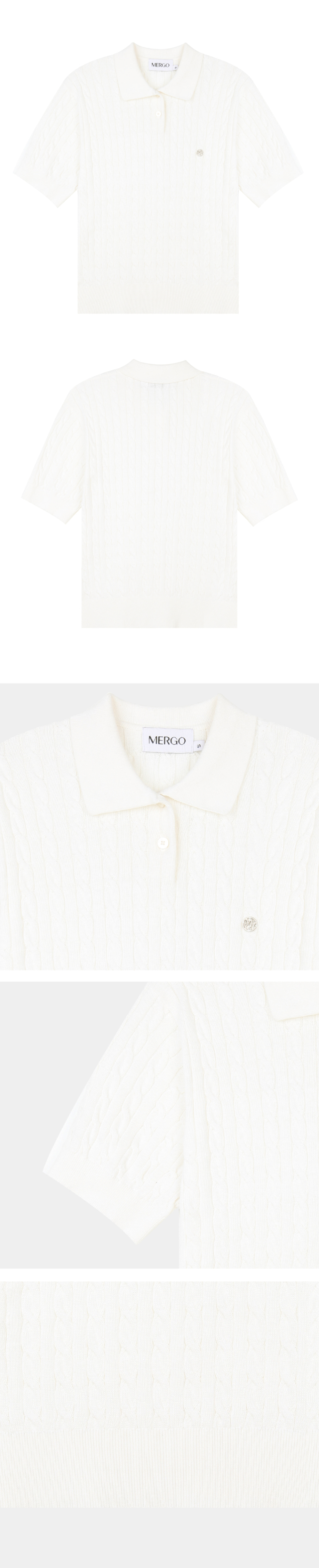 케이블 카라 여자 반팔 니트 [아이보리]
