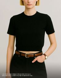 우먼 노디 라운드넥 반팔 니트 [블랙]