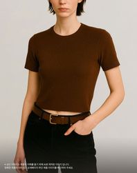 우먼 노디 라운드넥 반팔 니트 [브라운]