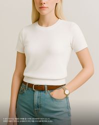우먼 노디 라운드넥 반팔 니트 [아이보리]