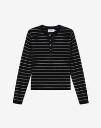 우먼 모디프 스트라이프 헨리넥 니트 [블랙]