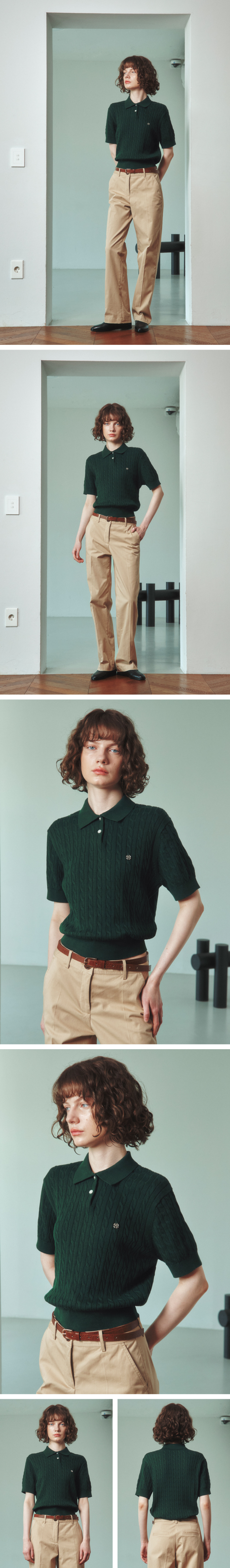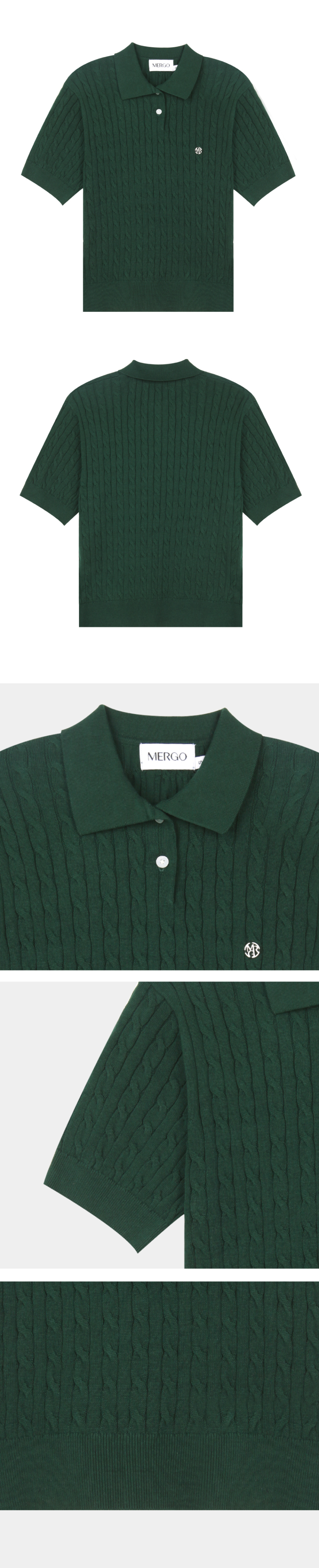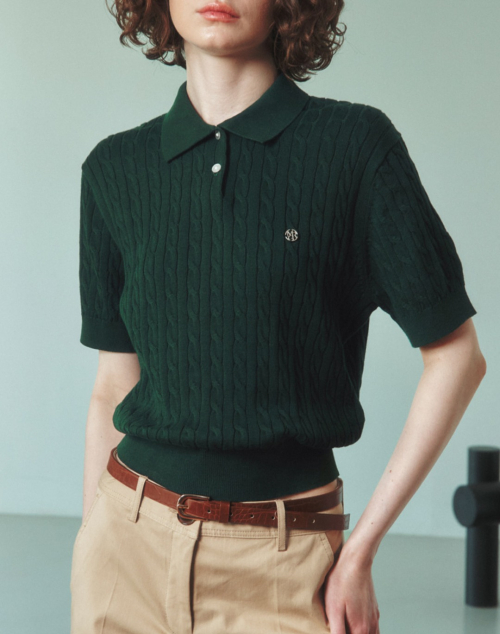 케이블 카라 여자 반팔 니트 [에버그린]