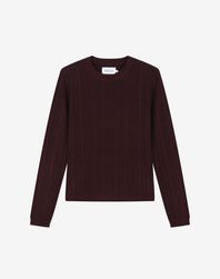 우먼 모디프 리브드 라운드넥 니트 [버건디]