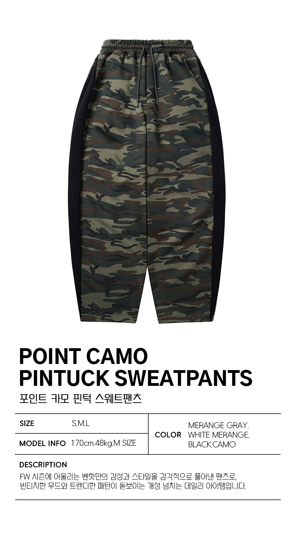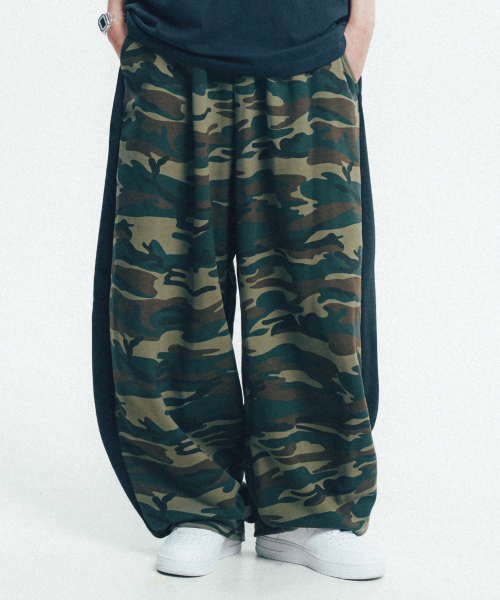 포인트 카모 핀턱 스웻팬츠
