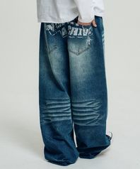 Back hand printing 와이드 데님 팬츠