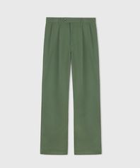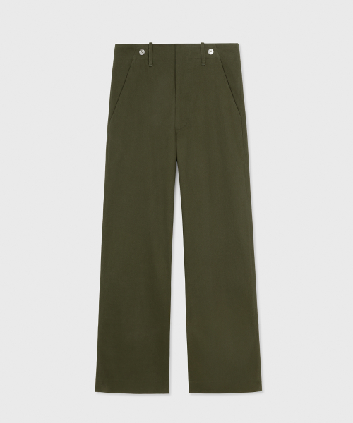 매트한 표면과 섬세한 밀도가 돋보이는 코튼 드릴 소재 브레이스 트라우저 입니다. 밴드리스 디자인에 서스팬더 버튼을 오마주한 자개 장식 단추가 특징적이며 헤리티지 스타일의 와이드 레그 실루엣입니다. 테일러드 베이스로 완성한 클래식 트라우저로 시간에 구애받지 않는 타임리스 아이템입니다.