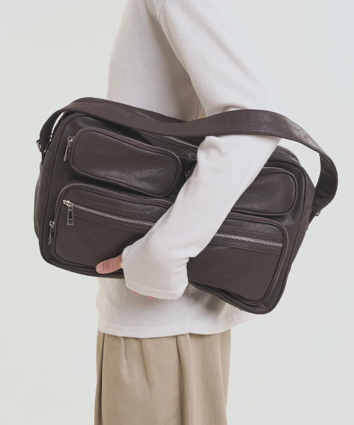 레더 빅 크로스 토트 백 - 브라운