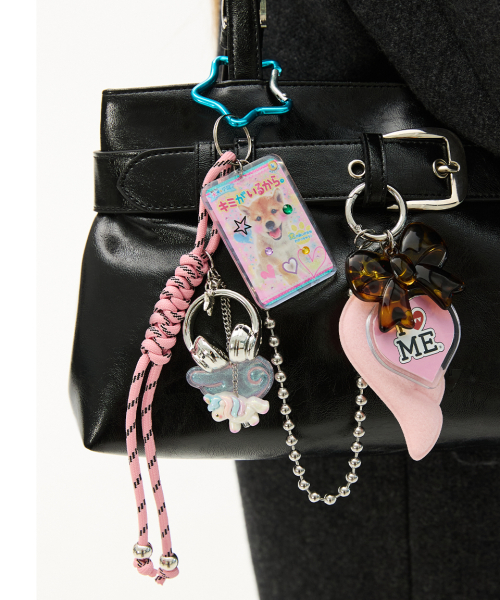 베이비 엔젤 스타 리본 체인 스트랩 키링 _ 핑크