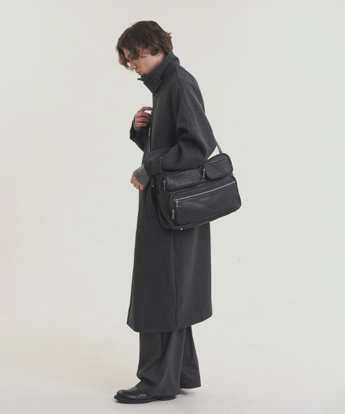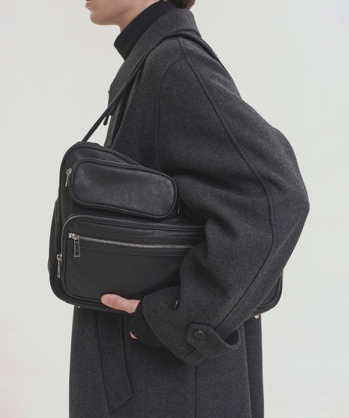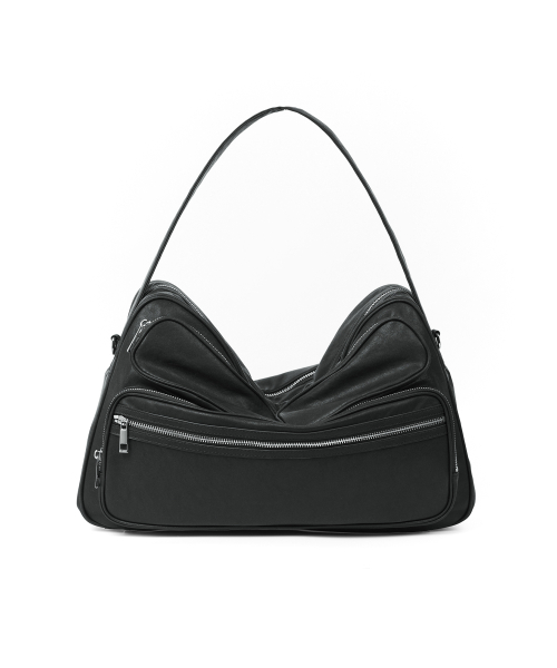 멀티 쉘 레더 숄더 토트백 - 블랙