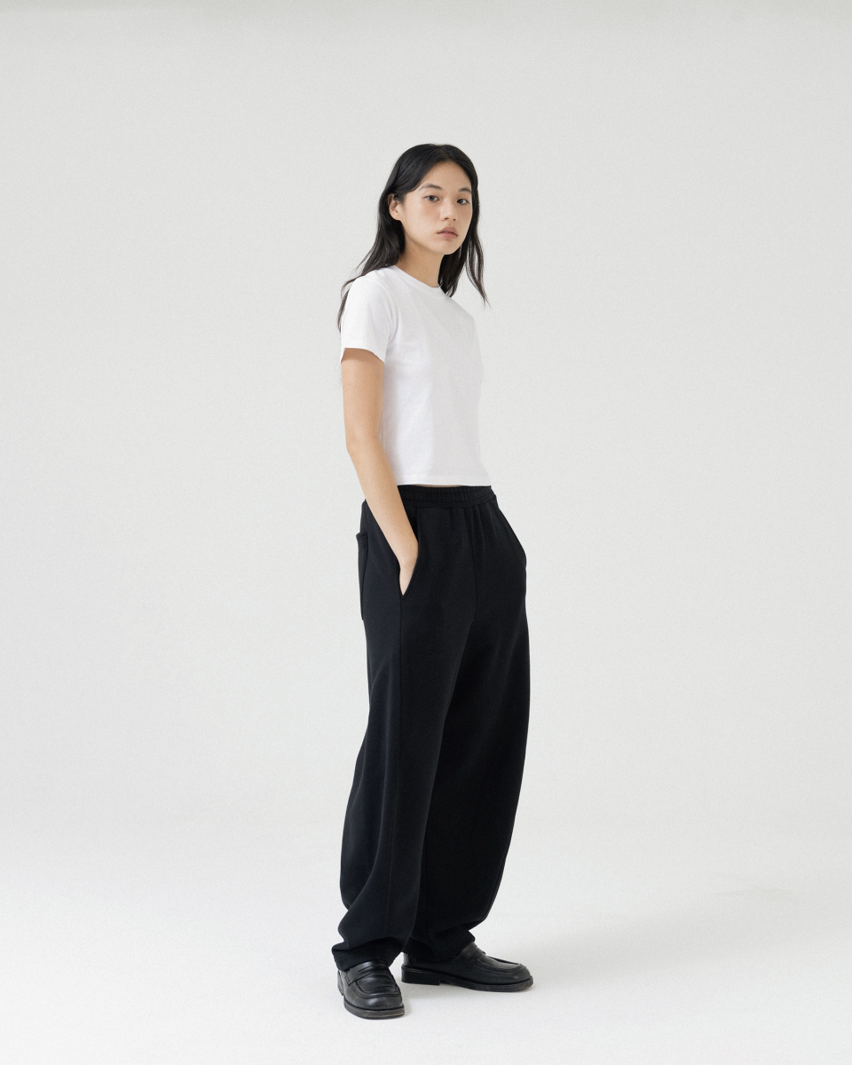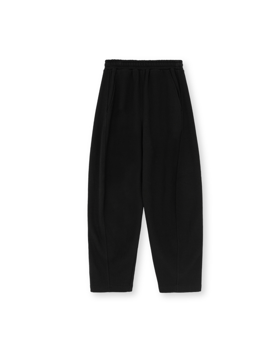 바깥쪽에서 안쪽으로 들어오는 라인 디테일이 특징인 배기 스웨트 팬츠 입니다.