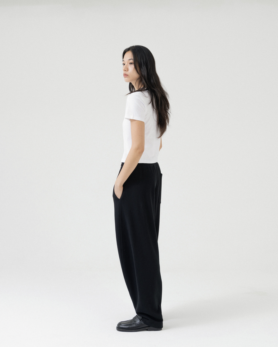 여유로운 밑위길이와 허리 밴딩으로 편안한 착용이 가능합니다.